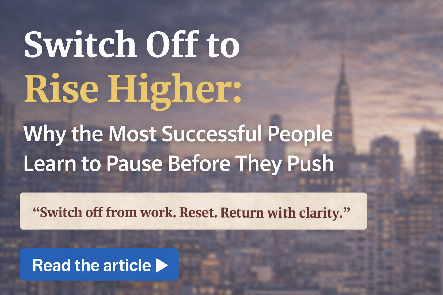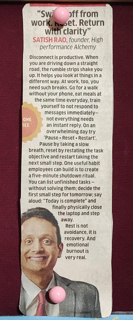 When The Economic Times published that headline — “Switch off from work. Reset. Return with clarity.” — it captured something deeply human. We don’t need to escape our lives. We need to come back to them with presence, purpose and peace.